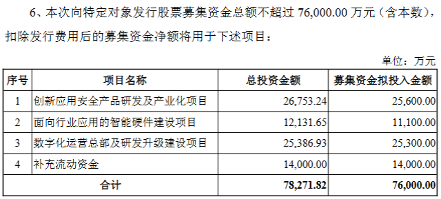 2月10日晚间,楚天龙(003040)公告,公司拟向特定对象发行股票募集资金总额不超过7.6亿元,用于创新应用安全产品研发及产业化项目、面向行业应用的智能硬件建设项目、数字化运营总部及研发升级建设项目及补充流动资金。