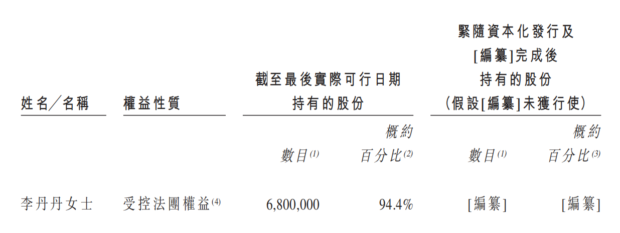 值得一提的是,截至最后实际可行日期,DDTT已持有约680万股股份,占公司已发行股本总额约94.4%。DDTT为于英属维尔京群岛注册成立之投资控股公司,并由Maple Leave全资拥有,而Maple Leaves则由李丹丹全资拥有。