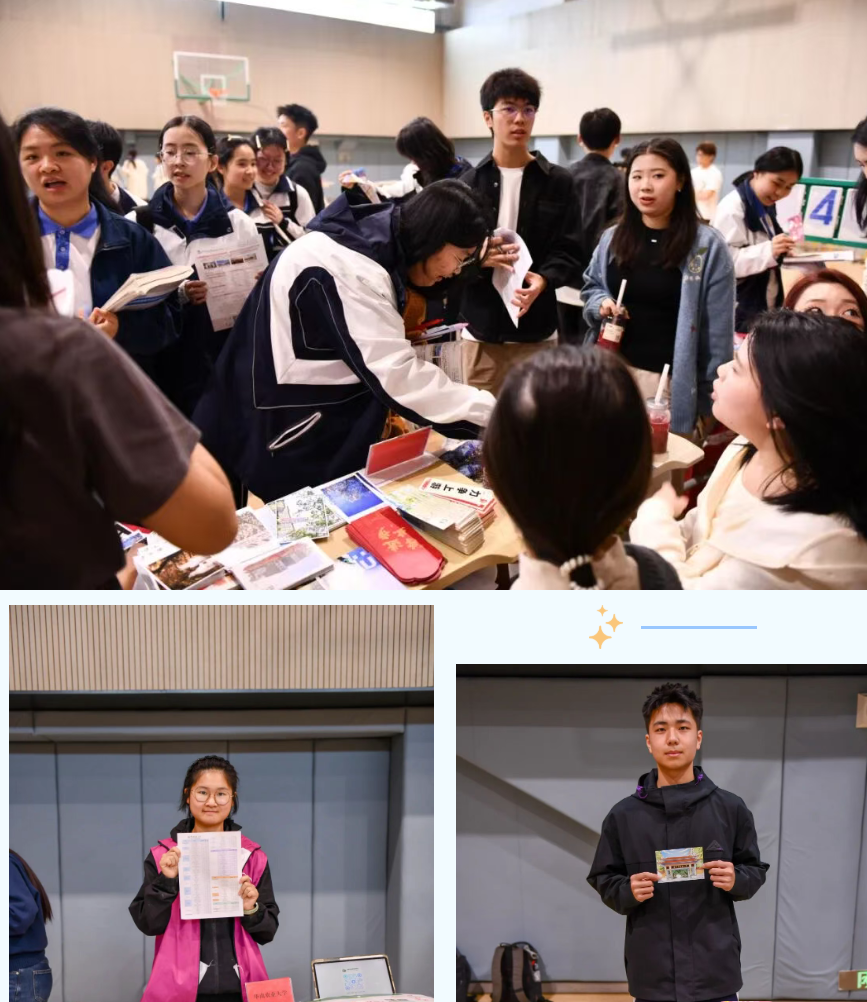 现场,学长学姐们精心筹备的各类宣传物料,吸引了大批“科崽”驻足围观、主动咨询。制作精良的大学宣传册、内容翔实的分享PPT,搭配创意定制书签、手写温情明信片,每一份物料都藏着满满的用心——明信片上的一笔一画,是学长学姐对学弟学妹的真诚期许;宣传册与PPT里,没有多余的客套话,全是实打实的升学干货。从各高校的办学特色、校园日常,到热门专业解读、历年录取分数线,学长学姐们精准梳理了学子们最关心的升学信息,为大家清晰规划前行方向,也点燃了大家对大学生活的无限憧憬。