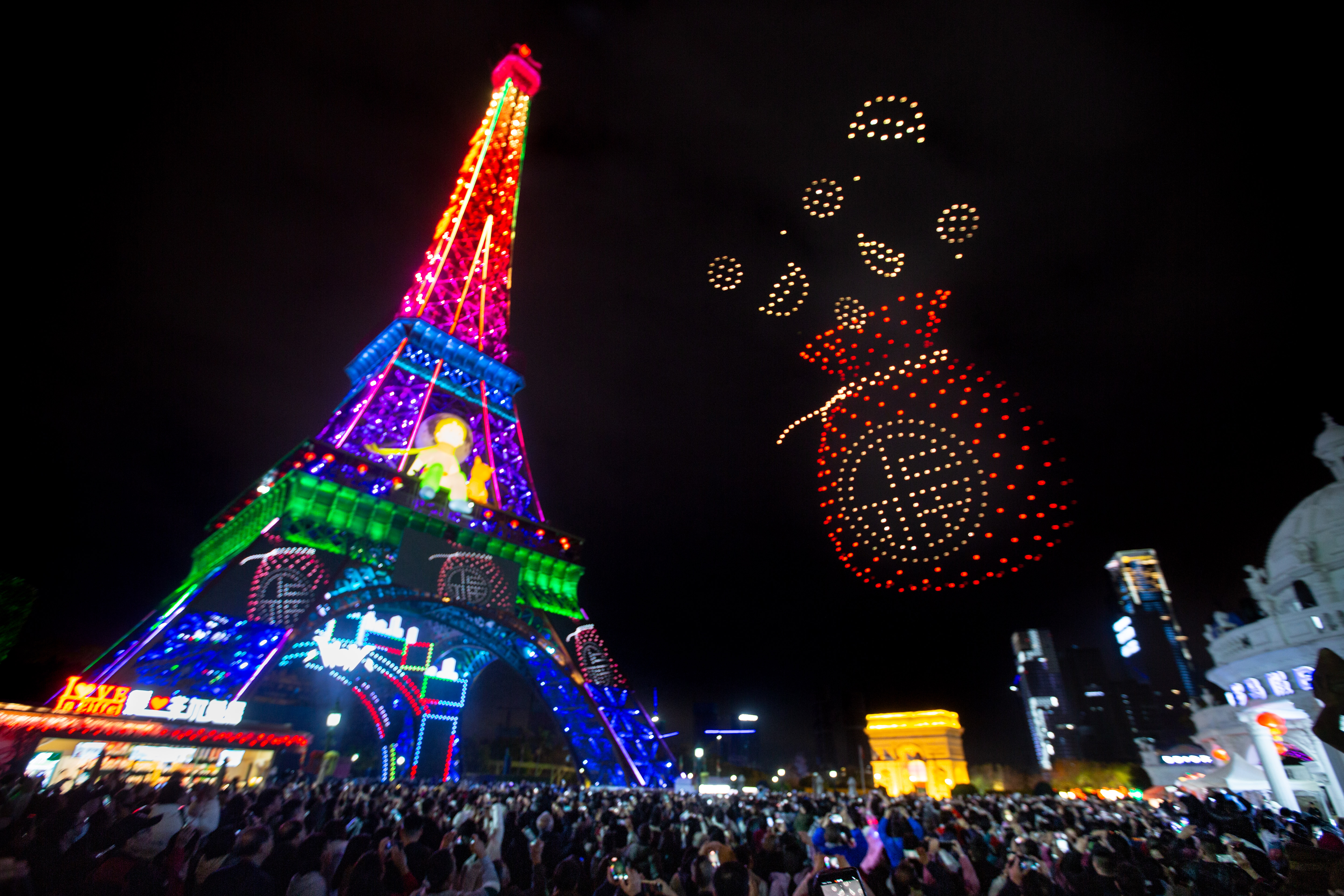 春节期间,世界之窗连续上演十天无人天幕大秀,为市民朋友带来千架无人机新春特献场,以深邃夜空为幕布,用科技与光影编织新春祝福,演绎极致的“赛博浪漫”,给游客带来前所未有的视觉震撼与艺术享受。