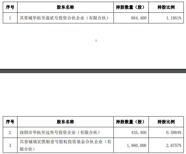 华拓至盈贰号、华拓至远叁号于2025年9月也公告拟减持,减持后,华拓至远叁号持股比例由0.6022%降至0.5884%。华拓至盈贰号在减持期间未减持股份。