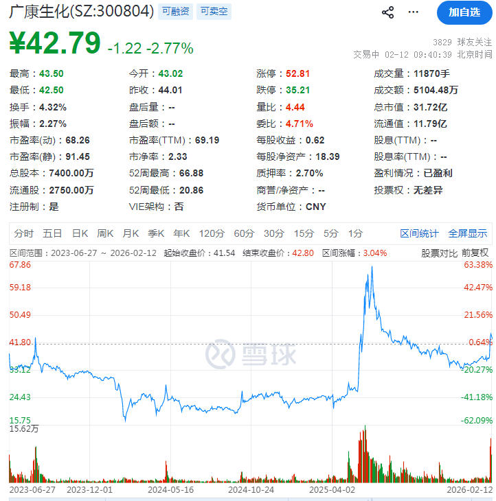 另外,此次减持公告发布时点微妙——正值公司股价从低位反弹之际。2月6日~11日,公司股价整体涨近20%,2月12日开盘,广康生化股价飘绿。截至发稿跌超2%。
