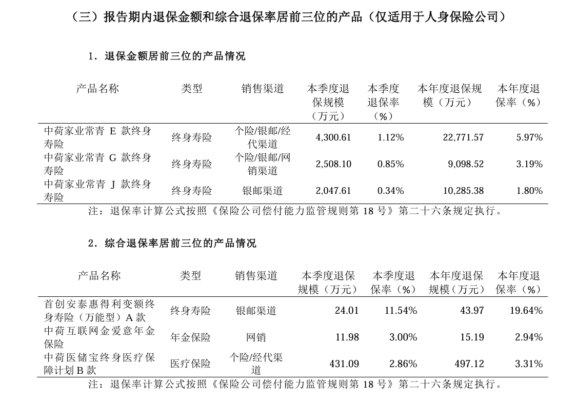 去年中荷人寿退保压力不小。中荷人寿2025年第四季度偿付能力报告显示,2025年中荷人寿退保规模位居前三的均为家业常青系列终身寿险,其中E款年度退保规模约2.28亿元,J款约1.03亿元,G款约0.91亿元——以上三款产品合计退保规模约为4.22亿元,退保体量较大。