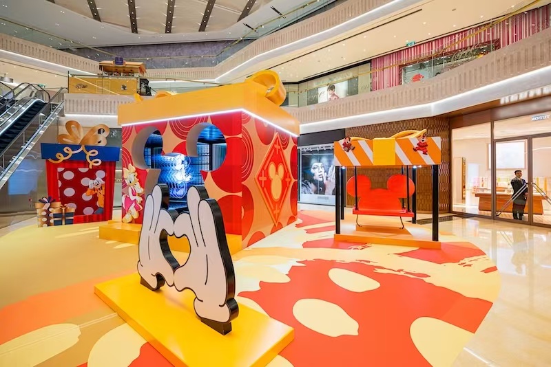 位于中庭节日限定版“米奇与好友”装置洋溢新春喜悦, 多位深受喜爱的迪斯尼人气角色以象征欢庆团圆与吉祥的节日姿态亮相,寄寓焕新纳福之意。3米高巨型礼物盒内暗藏象征富裕丰盈的金元宝;两侧配以1.8米高传统锣鼓,待宾客前来击鼓除旧迎新,宾客更可搭乘米奇秋千,寓意新一年步步高升。壹号广场将春节的喜庆传统元素与迪斯尼角色魅力完美结合,营造出沉浸式欢乐节日氛围,定将为宾客留下值得珍藏的佳节温馨时刻。