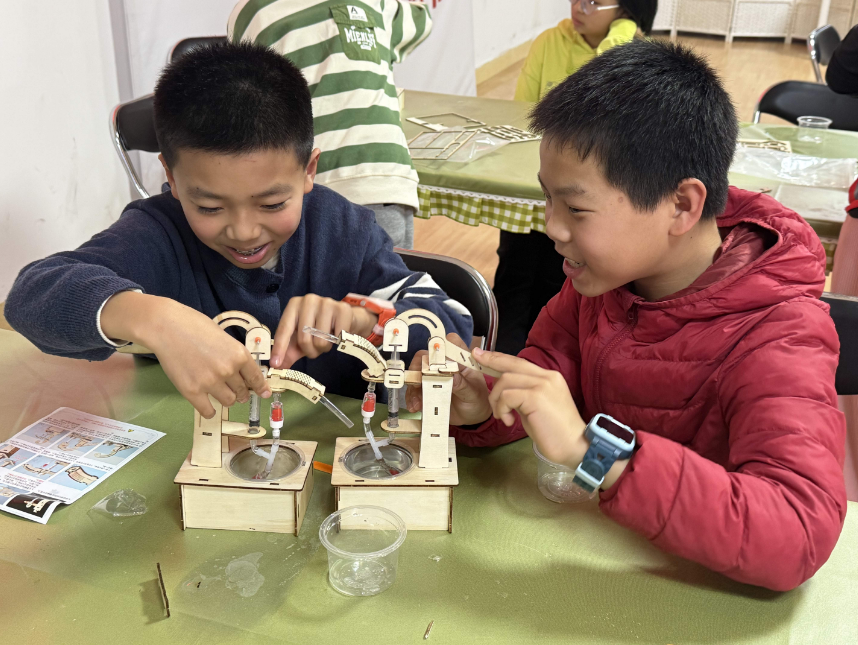 此次活动刻意设计了大量互动环节。在科学实验课上,孩子们在指导下亲手学习制作手压抽水机,在动手实践中不仅了解了抽水机的基本构造和工作原理,更直观认识了压力、气压等科学概念及其在实际中的应用;在体育运动环节中,社工带领孩子们进行了丰富多彩的游戏互动与体育锻炼,既锻炼了身体,又提升了团队协作能力,充分体现了促进青少年全面发展的活动宗旨。