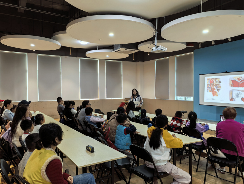 活动伊始,中心特邀的绘本讲师引导家长与孩子们一同进行音乐律动,悦耳的旋律瞬间点燃了现场气氛。随后,讲师带领大家共同走进了绘本《好困好困的新年》的奇妙世界。绘声绘色的讲述,将趣味盎然的故事与传统年俗知识巧妙融合,孩子们听得聚精会神,在欢笑与思考中领略了春节文化的独特魅力,家长也陪伴在侧,在轻松氛围中共同感受传统文化魅力。