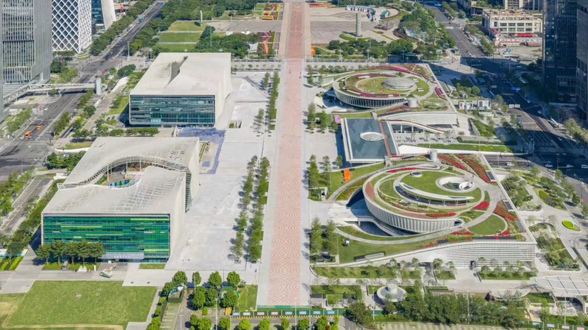 南端,在宝安中心区,紫荆文化总部、vivo全球总部等企业地标鳞次栉比,见证着“地理轴线”向“价值中轴”的蝶变。楼宇之间,湾区大广场正以无界姿态串联起繁华与山海——这里北接湾区大道,南连滨海文化公园,市民可沿着铺满祥云纹样的广场地面,从摩天楼宇的现代气场中从容步入海滨的浪漫视野。