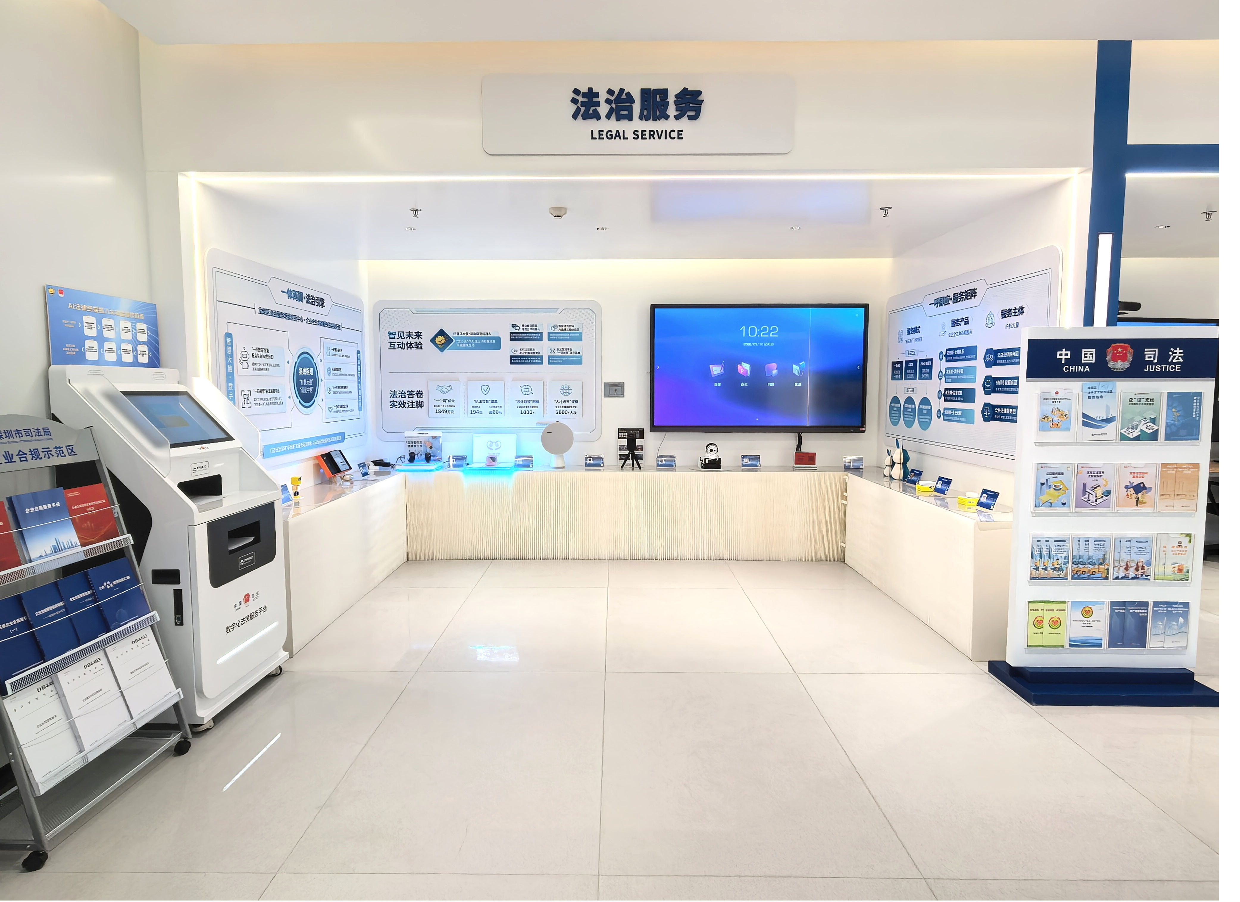 “前店”,是企业的法治会客厅。走进法治服务中心,“一窗通办”综合受理区让企业告别“多头跑”;AI法律科技体验区,智能终端随时待命;24小时自助服务区,让法律服务不打烊。面对面的温度、智能化的效率、全天候的守护,在这里融为一体。