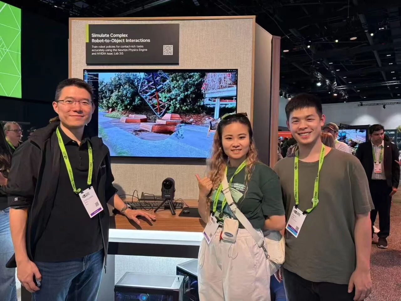 “其域创新”的Real2Sim方案,为这一痛点提供了颠覆性的破解路径。团队通过自研智能空间感知设备,高效完成NVIDIA总部办公空间的全场景数据采集,并依托自动化三维重建技术生成高保真3D高斯模型,将真实物理世界1:1快速转化为可计算、可交互、可推演的数字孪生世界。这些高精度模型可直接导入NVIDIA Isaac Sim仿真平台,成为机器人的“数字训练场”,使其在无限接近真实部署环境的空间中,完成大规模、低成本的闭环训练,从根源上缩小仿真与现实的差距,为具身智能从实验室走向真实场景筑牢了核心数字底座。