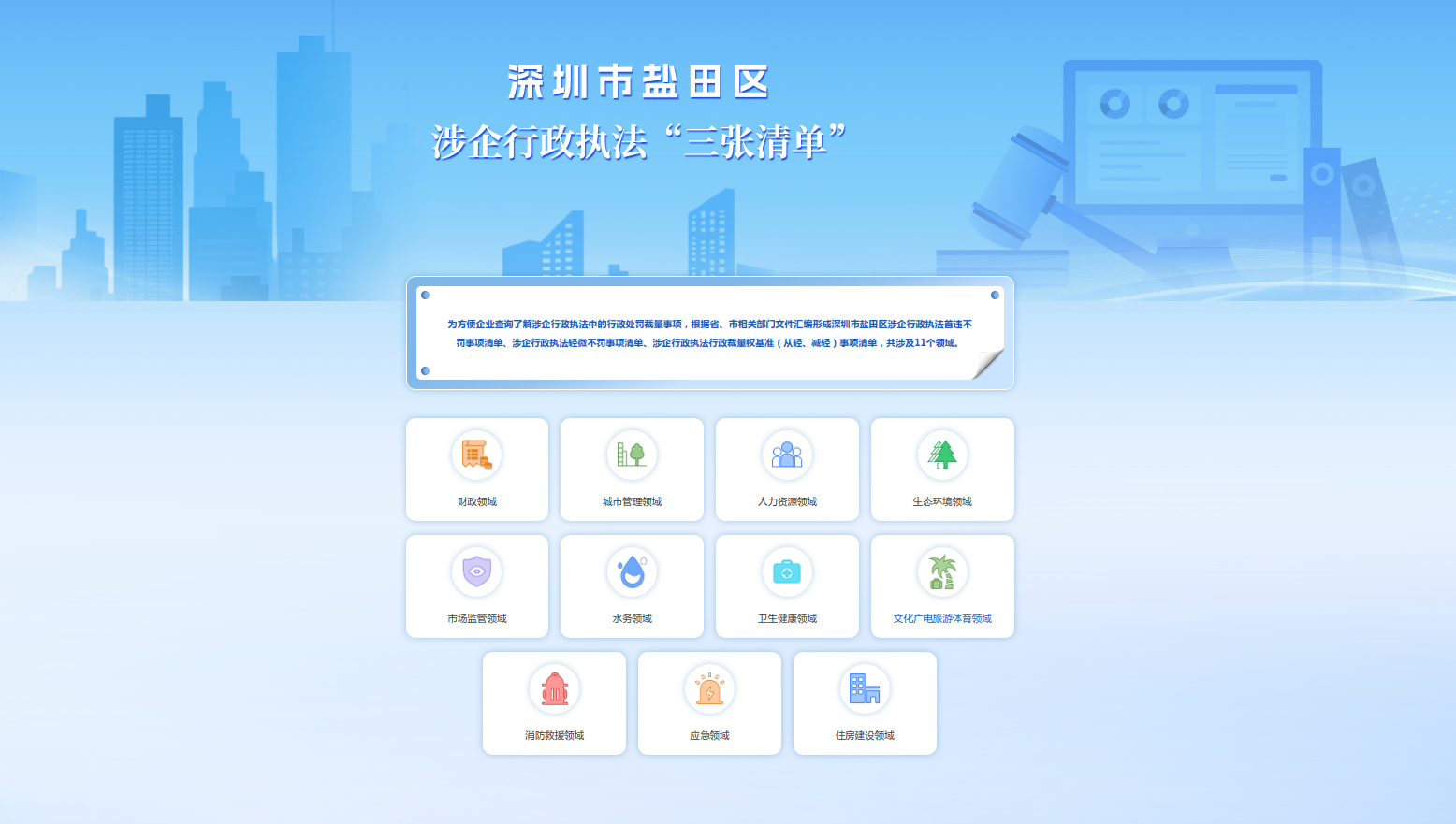 目前,涉企行政执法“三张清单”已在盐田区人民政府门户网站热点专题“涉企行政执法三张清单”专栏公开发布,企业和社会公众只需进入专栏便可快速、便捷地查询执法事项、执法主体及法律依据等关键信息。此举实现了政策“看得懂、找得到、用得上”,以公开透明助力公平监管,持续激发市场主体活力。
