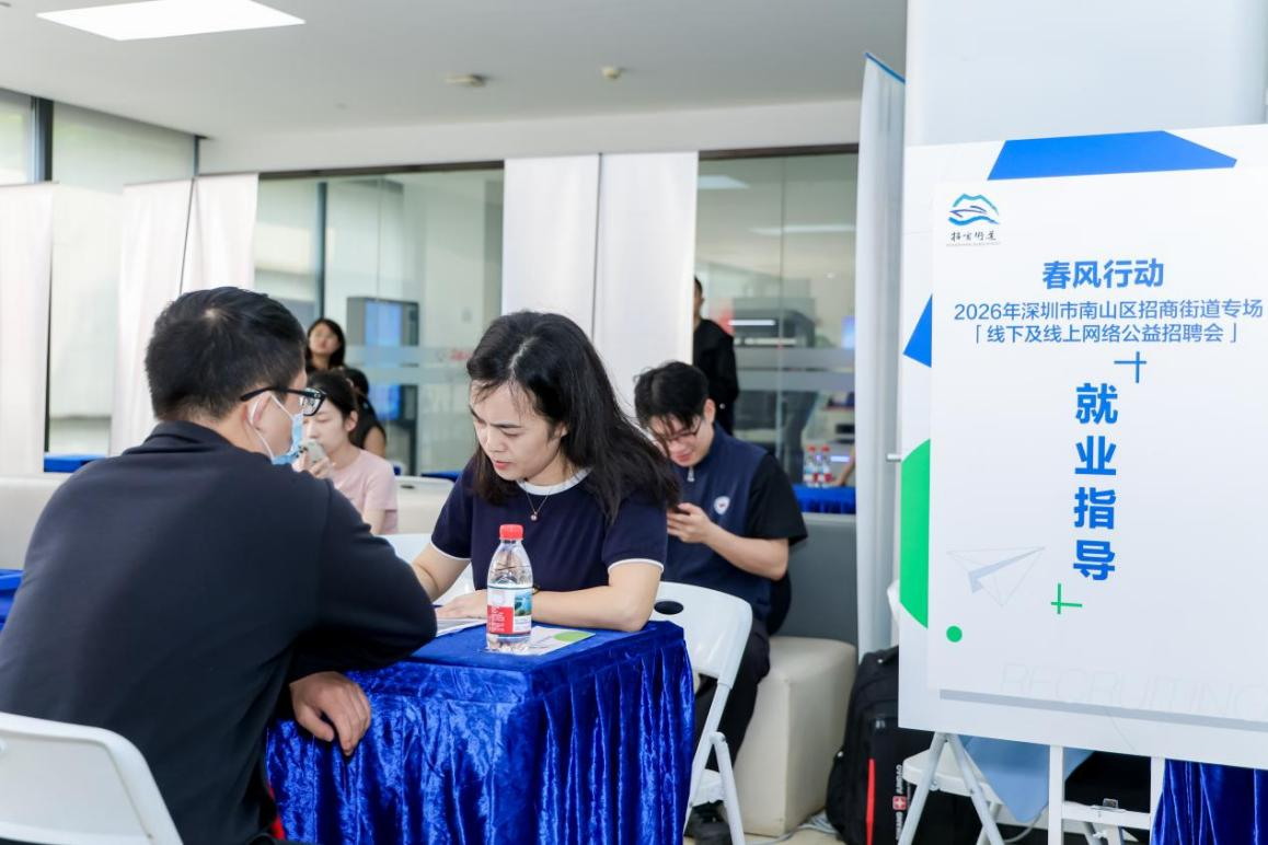 线下招聘会场设在南山区招商街道蛇口网谷科技大厦,现场布置规范有序,设置企业招聘区、南粤家政区、政策咨询区、简历诊断及面试指导区等功能板块。招商街道就业驿站、南山虚拟园区招商街道企业服务站、招商街道总工会协同协办,多方联动、密切配合,全程保障活动平稳有序推进。与此同时,线上网络招聘会同步启动,为期1个月的线上岗位推介打破地域壁垒,为无法到场的求职者提供便捷的在线简历投递、就业咨询等服务,实现“足不出户找工作”。