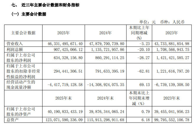 尽管公司宣称“经营活动产生的现金流量净额同比增长69.13%”,但这仅仅是因为去年基数极低(-143亿元)。实际上,2025年经营活动现金流净额依然为-44.18亿元,持续净流出。