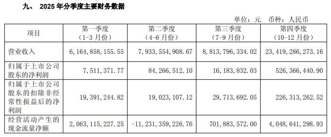 更值得警惕的是,第四季度的表现。公司全年扣非净利润为2.94亿元,而仅第四季度单季扣非净利润就高达2.26亿元。这意味着,前三季度公司扣非净利润合计不足7000万元。若非第四季度突击确认收益,全年主营业务利润将更为惨淡。
