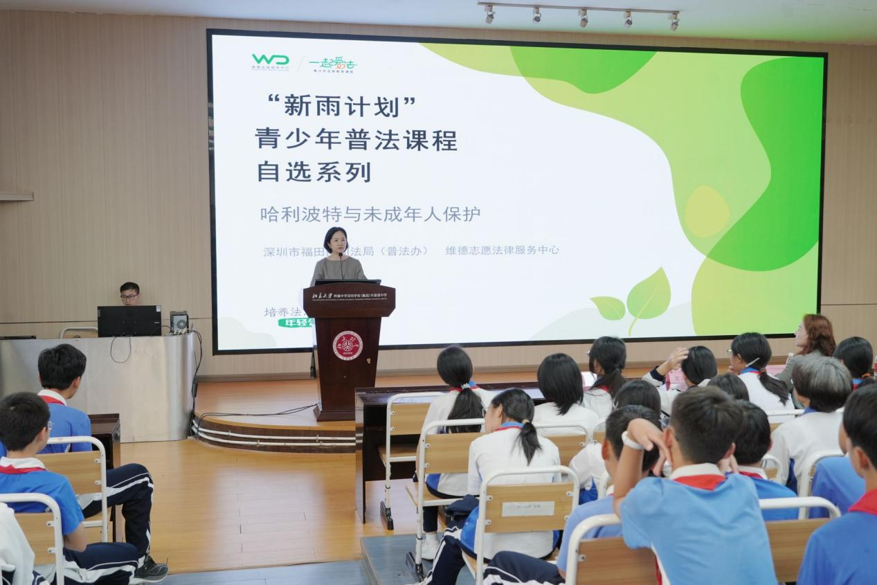 近日,北大附中深圳学校(集团)外国语中学的报告厅内,一场别开生面的“法治奇妙之旅”普法宣讲精彩上演。为深入贯彻落实《中华人民共和国法治宣传教育法》,深圳市福田区司法局(普法办)充分激活法治副校长机制效能,选派分管负责人担任该校法治副校长,并携手福田区青少年普法“新雨计划”资深普法志愿者、广东格祥(宝安)律师事务所杨丹律师为150余名初中学子带来了一场沉浸式法治教育盛宴。学校副校长王卿出席活动,与学子们共同开启这场充满新知的法治探索。