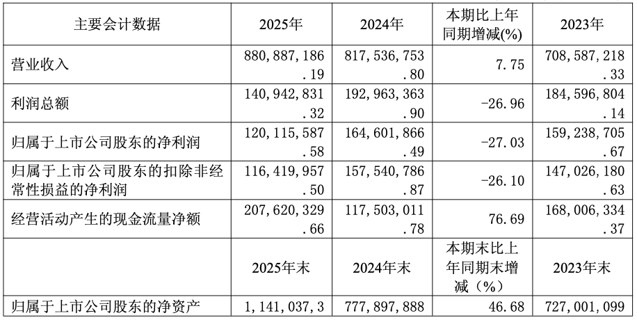 4月2日,宁波精达(603088)披露年报,2025年实现营业收入8.81亿元,同比增长7.75%;归母净利润1.2亿元,同比下降27.03%;基本每股收益0.25元。公司拟每10股派发现金红利1.7元(含税)。