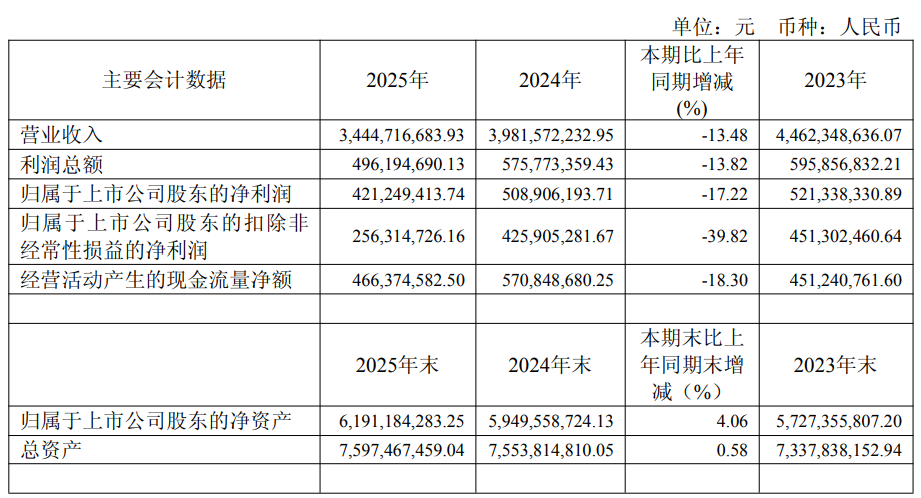 财务数据显示,公司2025年经营活动产生的现金流量净额为4.66亿元,较上年同期减少18.30%。公司经营活动获取现金的能力大幅下降。