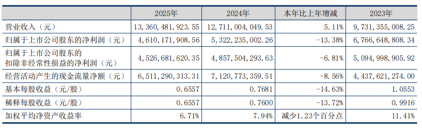 4月2日,招商公路(001965)公布2025年年报,公司营业收入为133.6亿元,同比上升5.1%;归母净利润为46.1亿元,同比下降13.4%;扣非净利润为45.3亿元,同比下降6.8%。公司2025年度分配预案为:拟每10股派发现金红利3.73元(含税)。