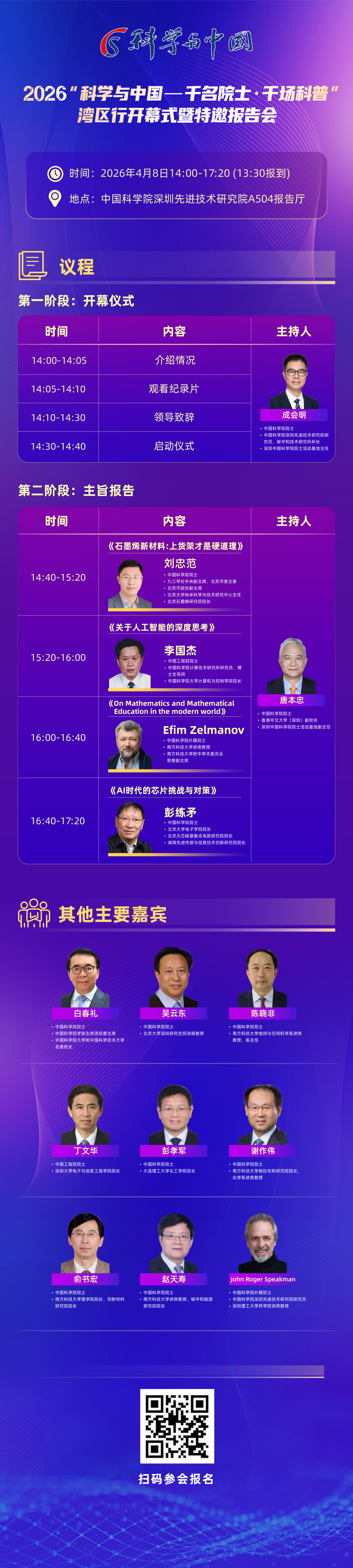 由中国科学院学部科学普及与教育工作委员会指导,深圳中国科学院院士活动基地联合中国科学院深圳先进技术研究院(以下简称“深圳先进院”)、广东院士联合会主办的2026“科学与中国——千名院士·千场科普”湾区行活动4月将在深圳启动。