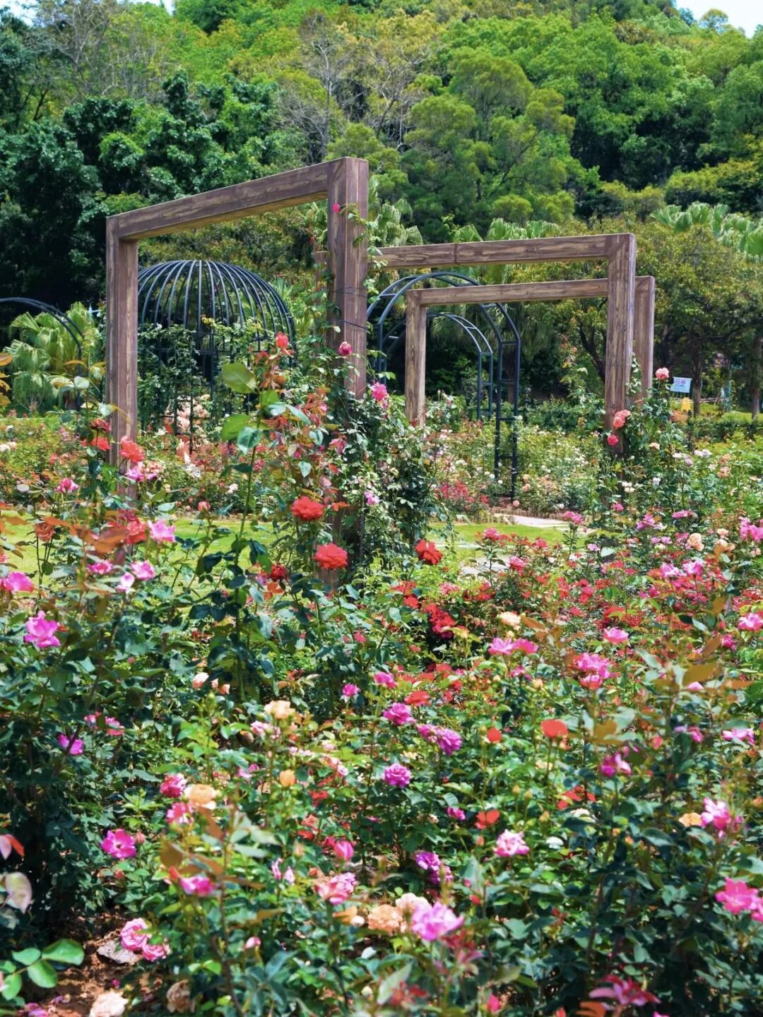 作为深圳唯一的省级森林公园,从南门入园不远就是月季园,满园月季开得热烈绚烂,色彩层层叠叠,像闯进了莫奈笔下的油画。
