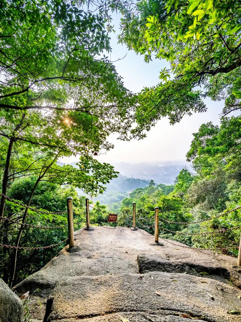 阳台山是深圳西部最高峰,还入选过深圳八景。山间溪涧流水,竹林环绕,走在步道上沉浸式吸氧,十分治愈。登顶之后,城区与湖山景色尽收眼底,视野格外开阔。
