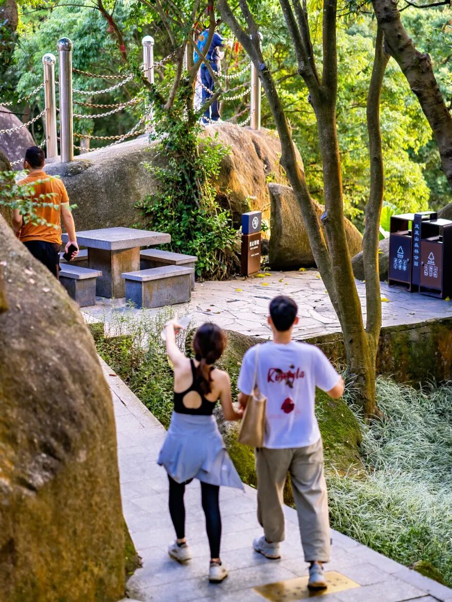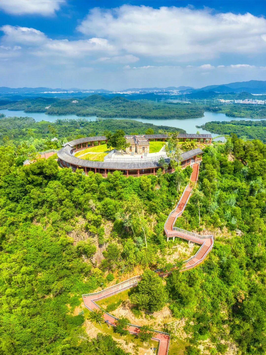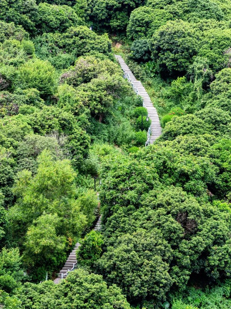 宝安区最大的城市山地公园,十六条登山道穿梭在林间,如同走进城市森林。天然氧吧般的环境让人呼吸舒畅,登顶后还能望见海面,山林与海景同框,体验感很好。