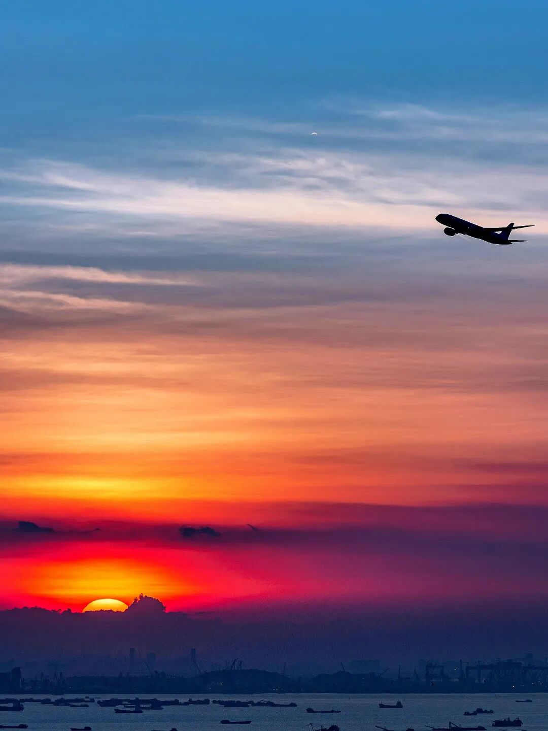 山顶视野绝佳,观景台能将海上日落与深中通道一同收入眼底,还时常能遇见低空掠过的飞机。橘色晚霞搭配城市与海面,随手一拍都是充满电影感的画面。