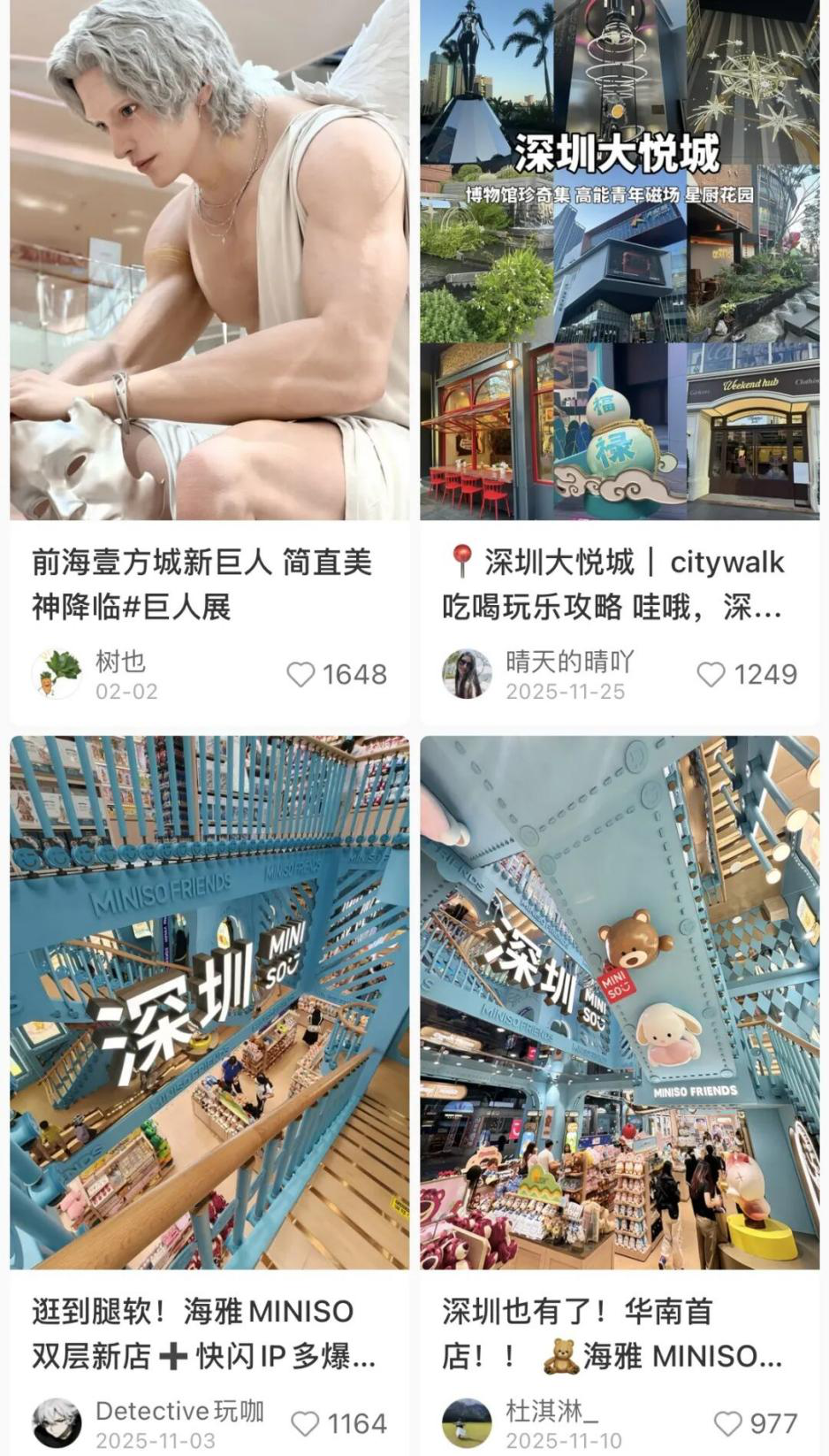 在小红书上,宝安这些地铁直达的商场人气很高,是假期休闲的热门选择。