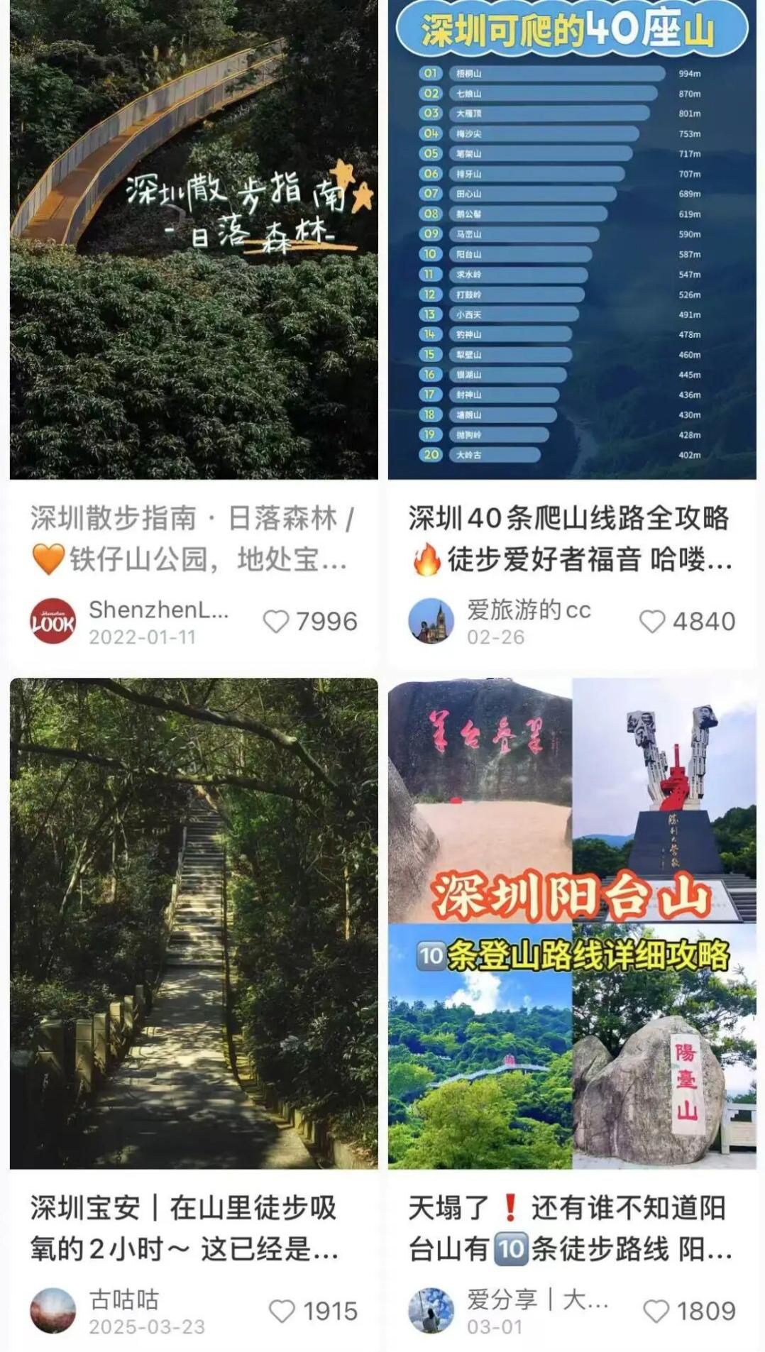 小红书上,不少人都在分享宝安爬山的日常,快趁着假期,也去山林里放松一下。