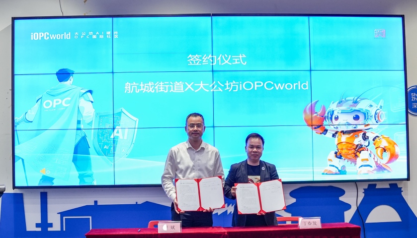 活动现场,航城街道与国家级众创空间大公坊iMakerbase正式签约,正式授予大公坊AI硬件OPC国际社区“航城·领航OPC示范社区”称号。“政企联手”成为本次示范社区建设的一大亮点。