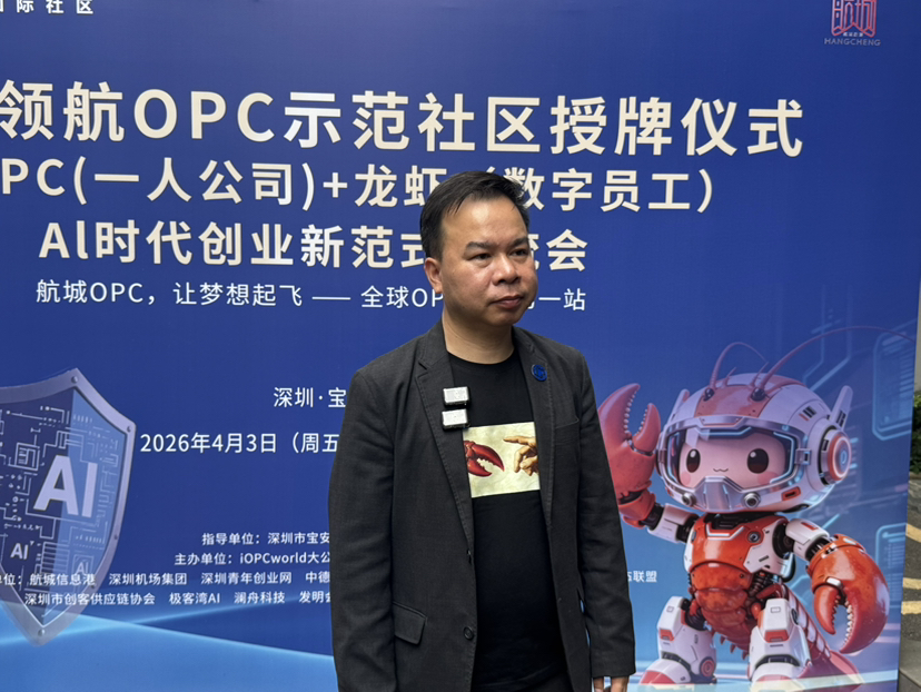 AI技术革新催生创业新模式。以OpenClaw(俗称“龙虾”)爆火为契机,一人公司(OPC)成为当下“超级个体”逐梦创业的热门选择,轻资产、高灵活度的创业范式正掀起全新浪潮。4月3日,“航城·领航OPC示范社区”授牌仪式在宝安区航城街道大公坊AI硬件OPC国际社区举行,航城街道重磅推出全维度创业扶持举措,率先深耕AI一人公司创业赛道,以硬核赋能、全链服务为OPC创业者保驾护航,全力打造深圳OPC创业首选地、湾区AI创新创业核心承载区。