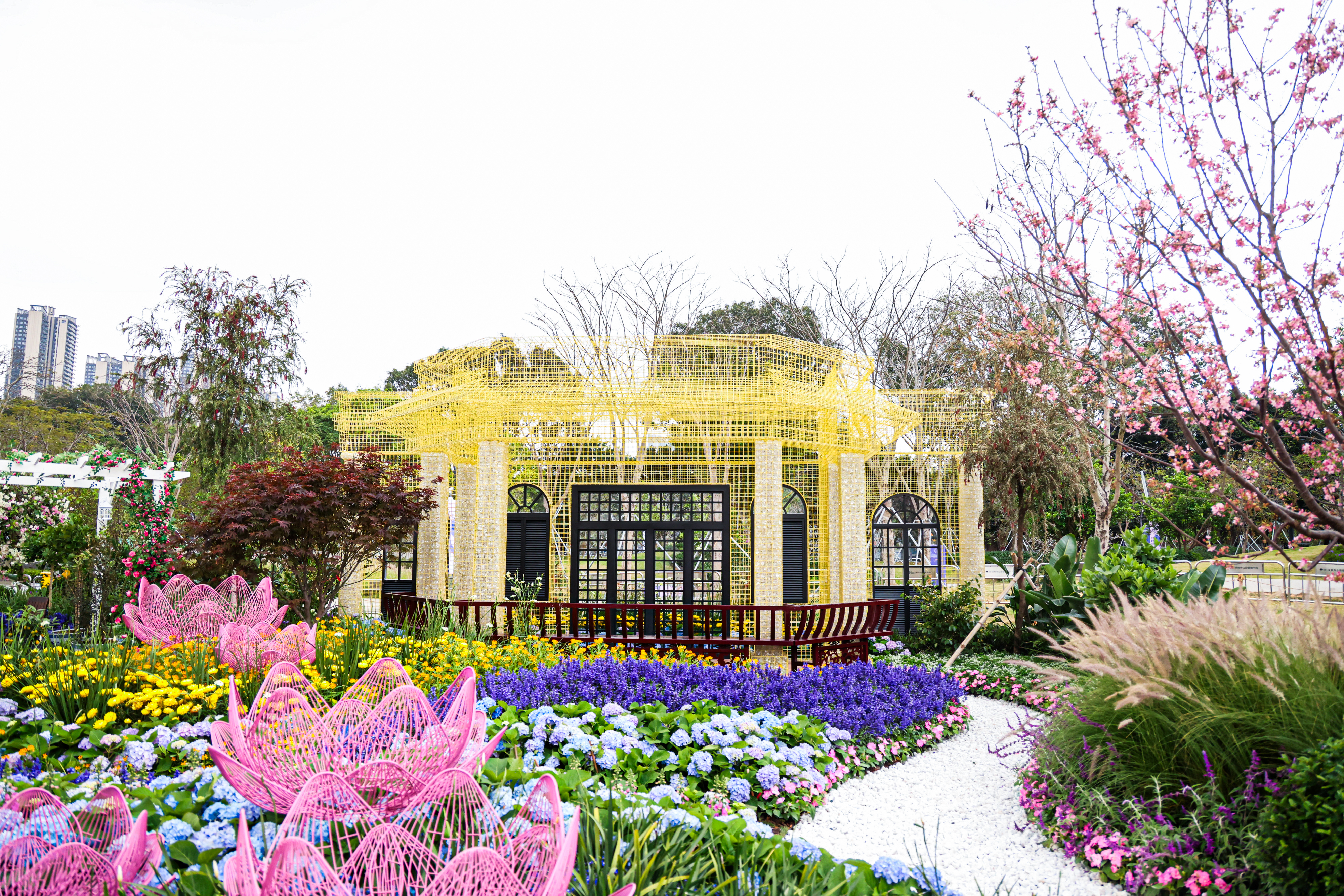 本届粤港澳大湾区花展以“优雅开放,融合共生”为主题,以鸢尾为主题花,汇聚中国香港、新加坡、新西兰、美国等APEC经济体设计师作品,30余座精品花园在笔架山体育公园竞相绽放。深业上城通过幸福廊桥与莲花山、笔架山无缝衔接,构建“赏花—漫游—消费”一站式动线,让自然景观与商业体验高效融合。