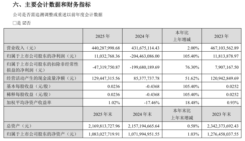 但值得注意的是,公司去年扣非后净利润仍为亏损。尽管公司归属于上市公司股东的净利润扭亏为盈,但扣除非经常性损益后的净利润仍为-4,731.98 万元,说明公司主营业务核心盈利能力尚未完全改善,利润增长对非经常性损益依赖度较高。2025年非经常性损益合计5,835.25万元,主要包括非流动性资产处置损益、政府补助、应收款项减值准备转回等,此类收益不具有持续性。