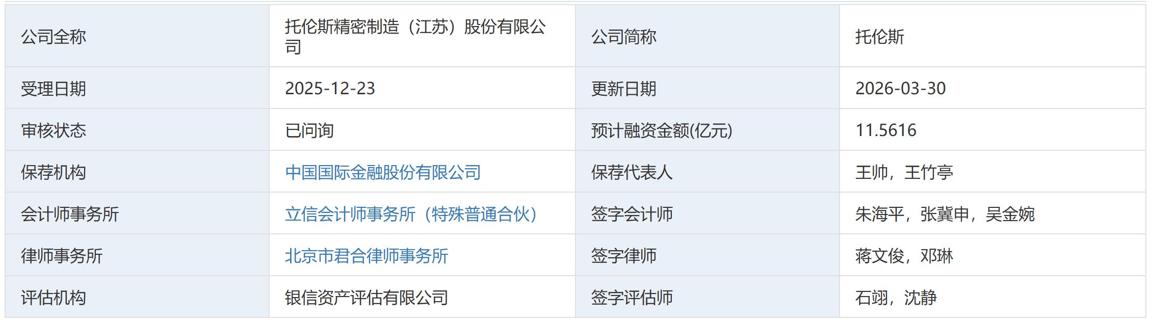 3月30日,据深交所官网,托伦斯精密制造(江苏)股份有限公司(下称“托伦斯”)更新招股书。该公司2025年净利下滑,超八成营收系于两大客户,应收账款与存货双双走高且周转放缓。