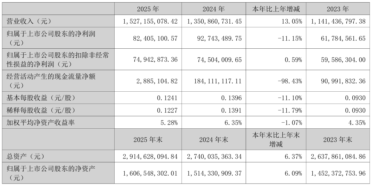 4月8日晚间,云鼎科技(000409)发布2025年年度报告,公司全年实现营业收入15.27亿元,同比增长13.05%;归母净利润为8240.51万元,同比下降11.15%;扣非净利润为7494.29万元,同比增长0.59%。