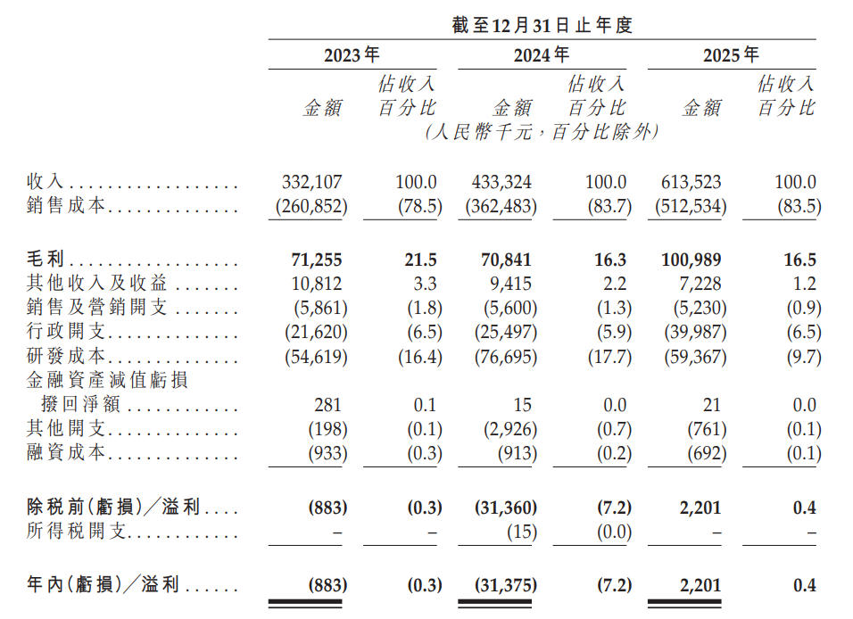 2023年~2025年,公司的毛利分别为71.3百万元、70.8百万元及101.0百万元;其毛利率分别为21.5%、16.3%及16.5%。