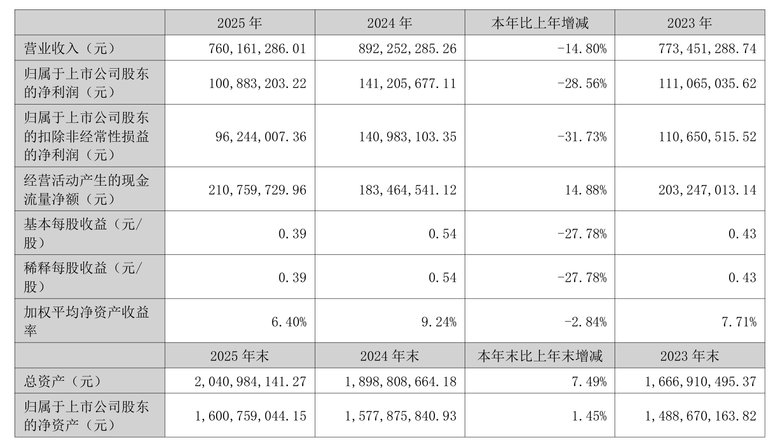 4月8日晚间,金富科技(003018)披露2025年年报,公司报告期内实现营业收入约7.6亿元,同比减少14.8%;归属于上市公司股东的净利润约1.01亿元,同比下降28.56%;扣非净利润约9624.4万元,同比下降31.73%。