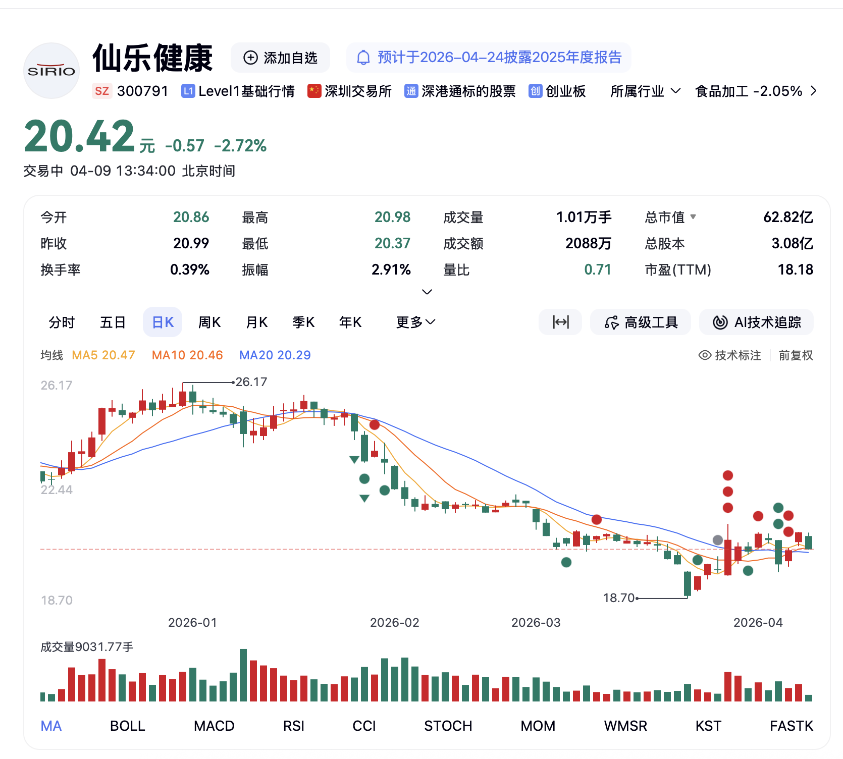 在资本市场,截至4月9日13点31分,仙乐健康股价出现一定波动,报20.72下跌2.72%,总市值62.82亿元,但整体仍维持基本面稳定预期。