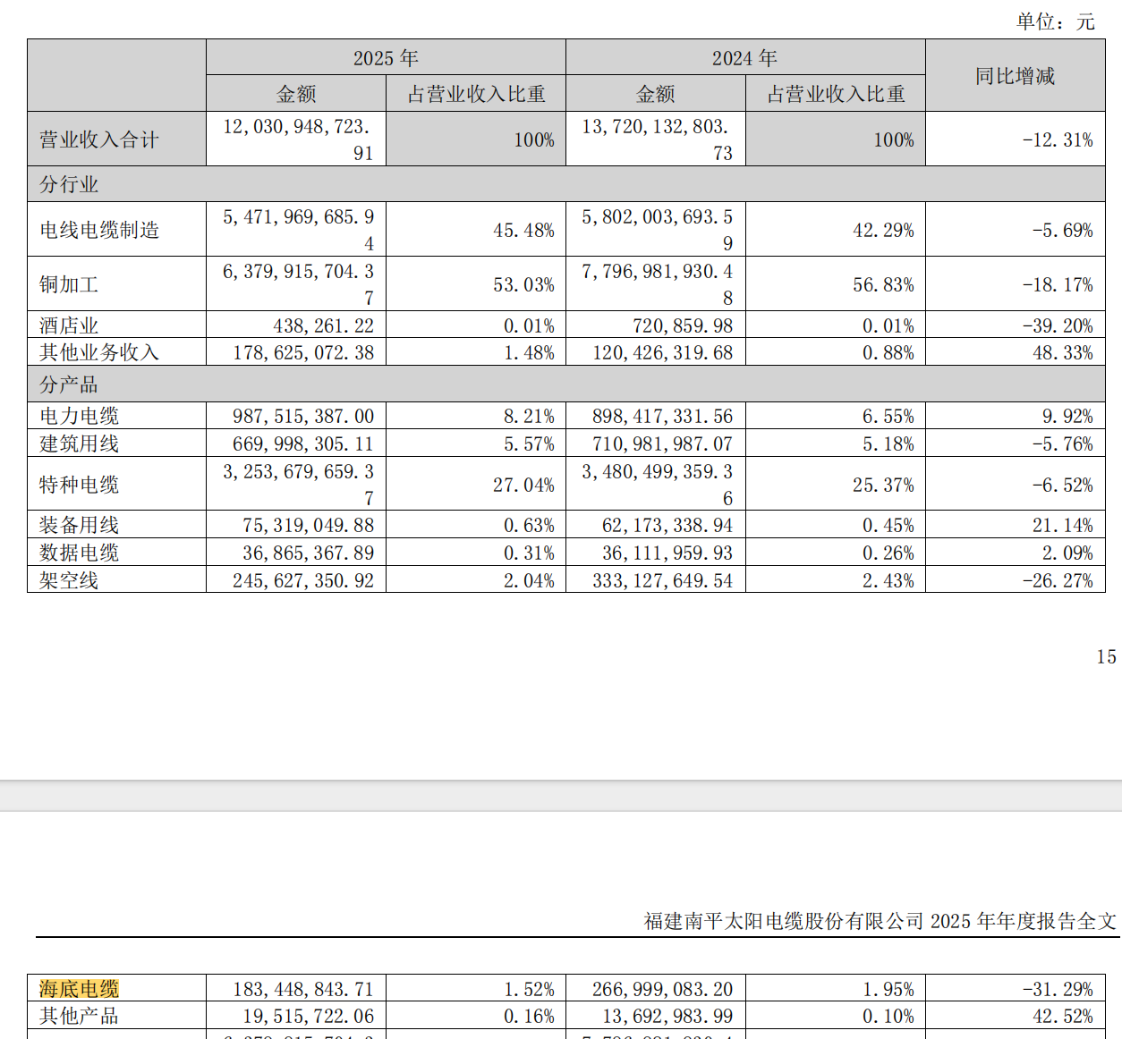 从年报数据来看,太阳电缆的海底电缆业务表现一般,全年营收1.83亿元,同比下滑31.29%。