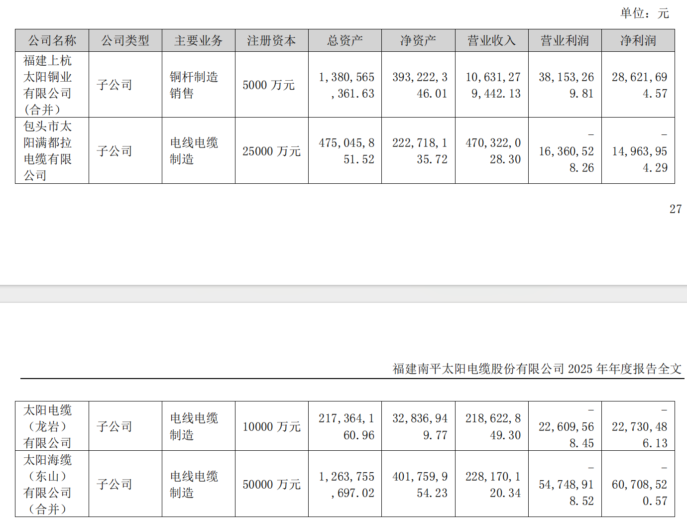 另外,太阳电缆有三家子公司出现亏损,分别是包头市太阳满都拉电缆有限公司、太阳电缆(龙岩)有限公司、太阳海缆(东山)有限公司(合并)。