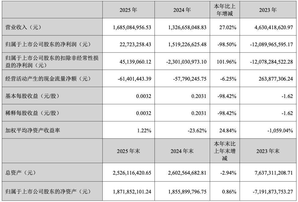 4月10日,合力泰(002217)披露2025年年度报告。2025年,公司实现营业总收入16.85亿元,同比增长27.02%;归母净利润2272.33万元,同比下降98.50%;扣非净利润4513.91万元,同比扭亏;经营活动产生的现金流量净额为-6140.14万元,上年同期为-5779.02万元;报告期内,合力泰基本每股收益为0.0032元,加权平均净资产收益率为1.22%。
