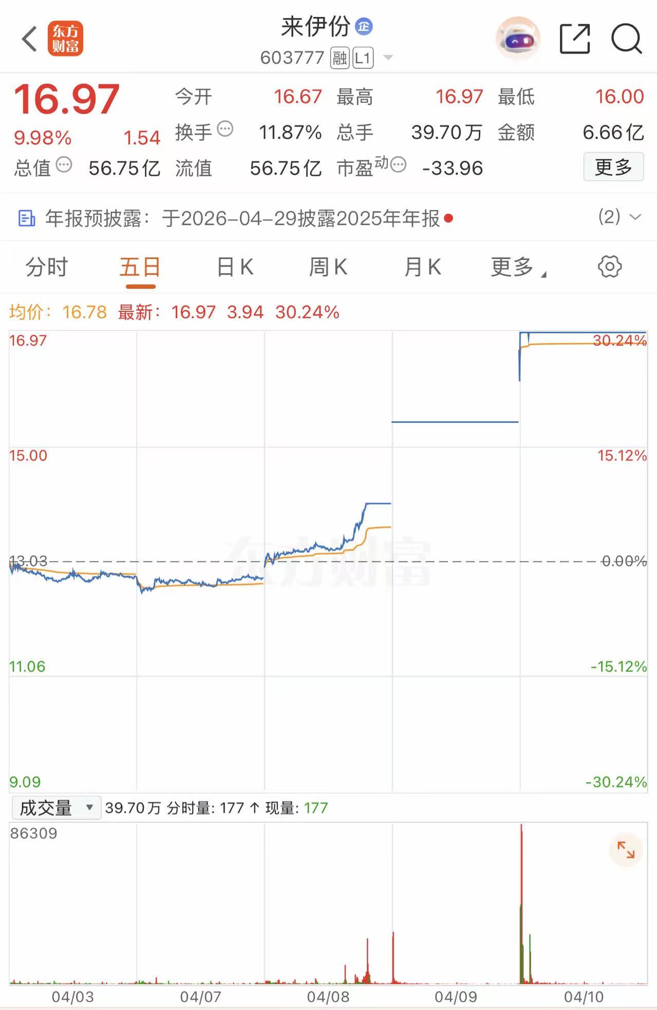 近日,“休闲零食第一股”来伊份(603777)迎来资本市场狂欢,4月8日~10日连续三个交易日涨停,市值随之升至56.75亿元。