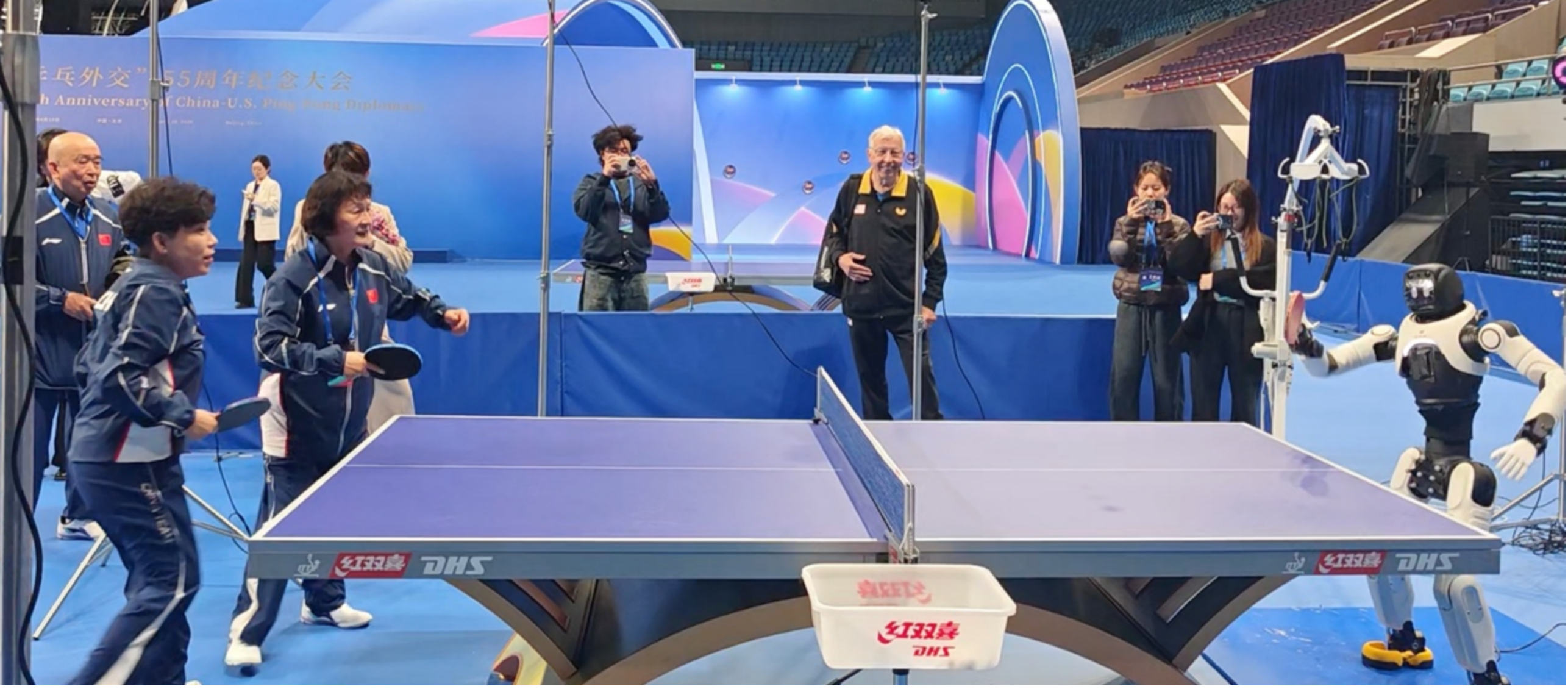 日前,在中美“乒乓外交”55周年纪念大会现场,智元机器人联合北京大学和北京智源人工智能研究院代表中国具身智能行业登场,搭载SpikePingping算法的人形机器人灵犀X2流畅展现连续接球、攻防转换、多回合对抗等复杂动作,以一场无遥控、全自主的乒乓对打互动体验,让跨越半个世纪的“小球转动大球”佳话,在AI时代焕发全新生命力。