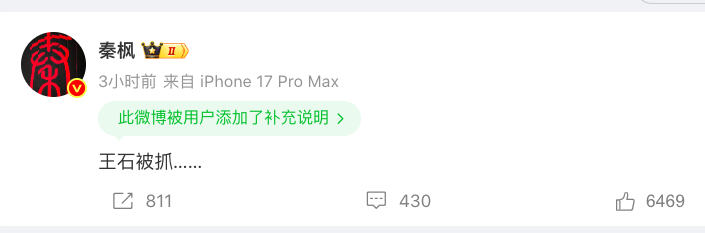 4月12日下午,有微博大V“秦枫”发帖称王石被抓,该消息一经发布便迅速引发全网广泛关注与热议。