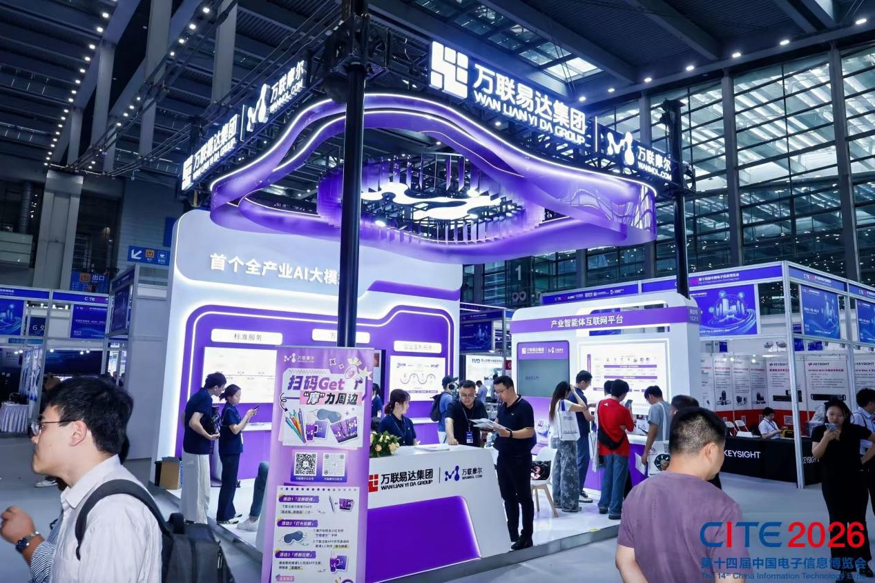 近日,第十四届中国电子信息博览会(CITE 2026)在深圳举行,集中展示了全球AI大模型、智能终端等领域的最新成果。其中,万联易达展区以全产业AI大模型“万联摩尔”为核心,系统展示了覆盖AI智能体、企业AI数字经纪人、产业智能体互联网等多种形态的全栈解决方案。