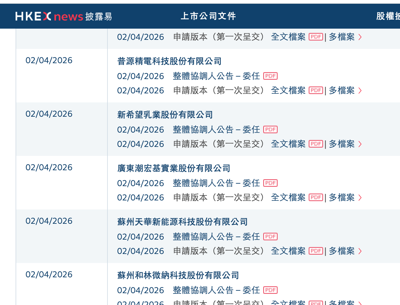 A股时尚珠宝龙头潮宏基(002345.SZ)于2026年4月2日正式向港交所主板二次递交上市申请,独家保荐人为中信证券,同日更新版招股书在港交所官网同步刊登,正式重启港股IPO冲刺之路。