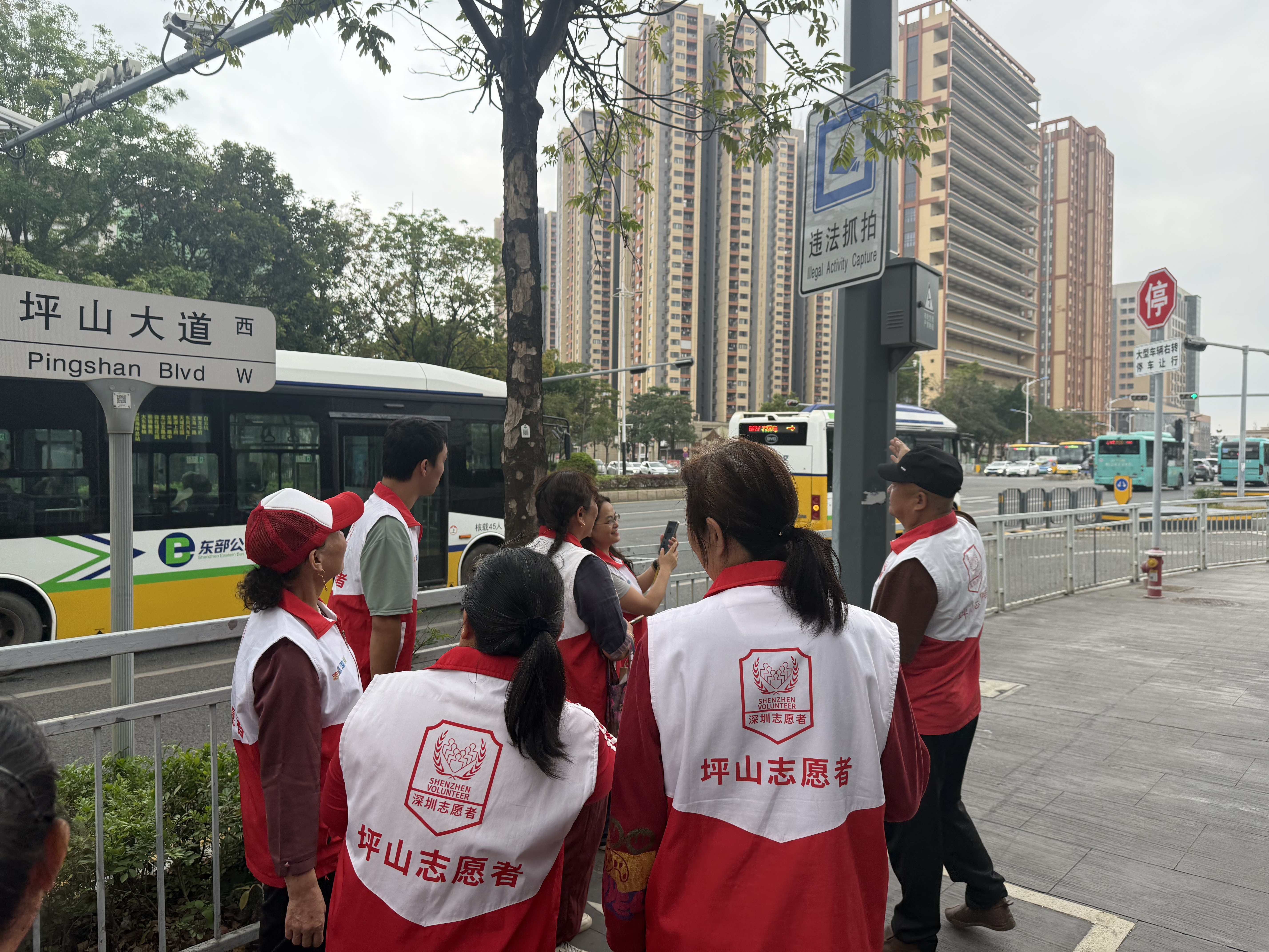 近日,在深圳市坪山区坑梓街道沙田社区,一群身着统一志愿服装的身影穿梭在主次干道、公共广场和沿街商铺之间——他们时而驻足仰头核对路牌上的英文翻译,时而凑近商铺招牌低声讨论拼写细节,还不时举起手机拍照记录。