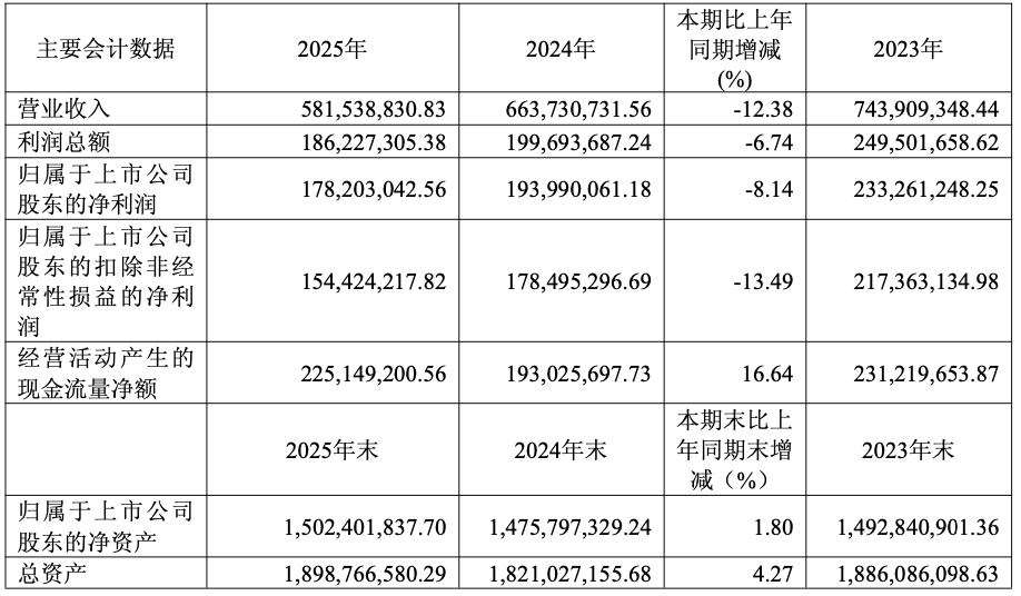 年报显示,公司拟向全体股东每10股派发现金红利6元(含税),预计总派发金额为1.23亿元。公司2025年中期已向全体股东合计派发现金红利4108万元(含税),2025年度累计分红金额预计为1.64亿元(含税),占归母净利润的92.2%。