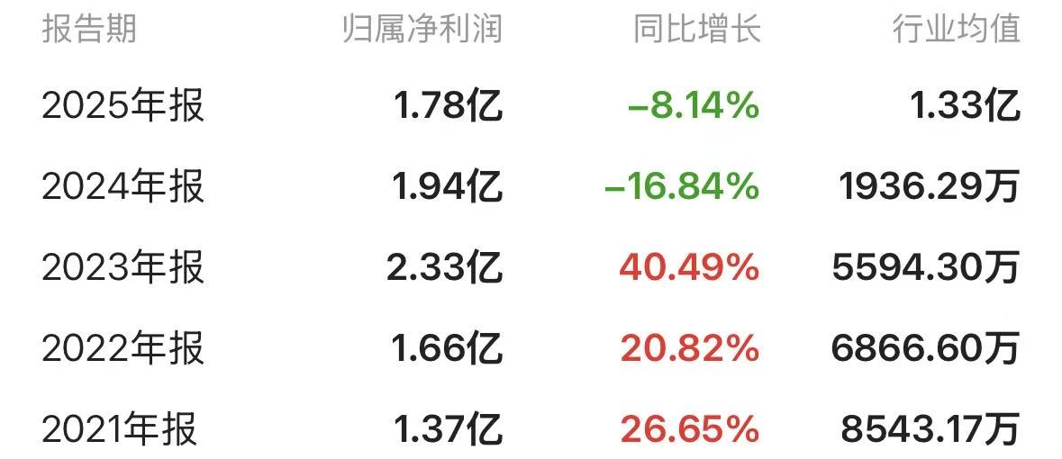 根据过往财报,顶点软件的营业收入、净利润已连续两年下滑。2021年至2023年,顶点软件营业收入、净利润一直稳步增长,这三年净利润分别为1.37亿元、1.66亿元、2.33亿元,直至2024年跌至1.94亿元,2025年继续下跌至1.78亿元。