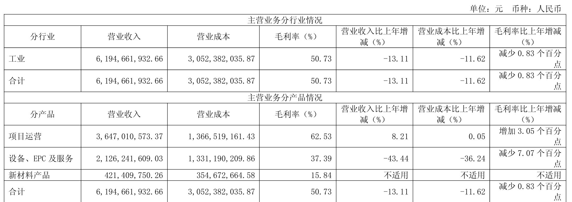记者注意到,公司第二大收入来源设备、EPC及服务收入同比下滑43.44%的同时,毛利率锐减7.07个百分点,是拖累整体业绩的主要因素。