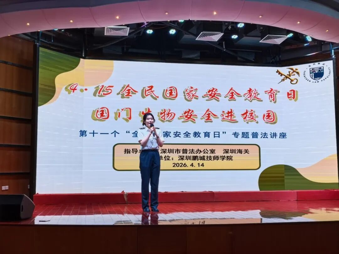 2026年4月15日是第十一个全民国家安全教育日。习近平总书记强调,国家安全是安邦定国的重要基石,维护国家安全是全国各族人民根本利益所在。为深入学习贯彻总体国家安全观,全面加强青少年国家安全意识、强化生物安全法治教育,近日,深圳市普法办公室、深圳市人力资源和社会保障局联合深圳海关,依托深圳鹏城技师学院“明法大讲堂”,共同举办了“深学总体国家安全观 筑牢国门安全防线”专题普法活动,学校骨干教师与学生代表共200余人参加。